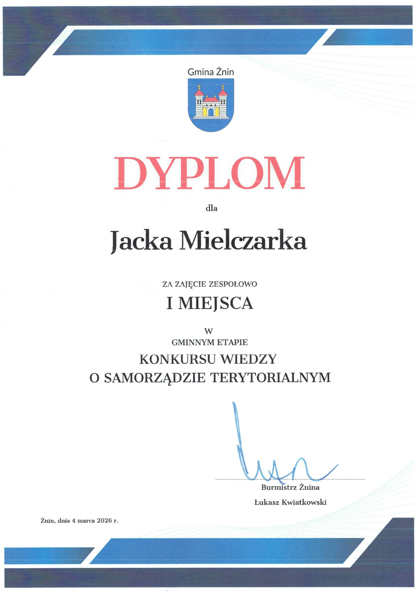 Dnia 4.03.2026r. w Szkole Podstawowej nr 1 odbył się etap gminny konkursu „Wiedzy o samorządzie terytorialnym”. Brało w nim udział dziewięć trzyosobowych zespołów z sześciu szkół z terenu gminy Żnin.